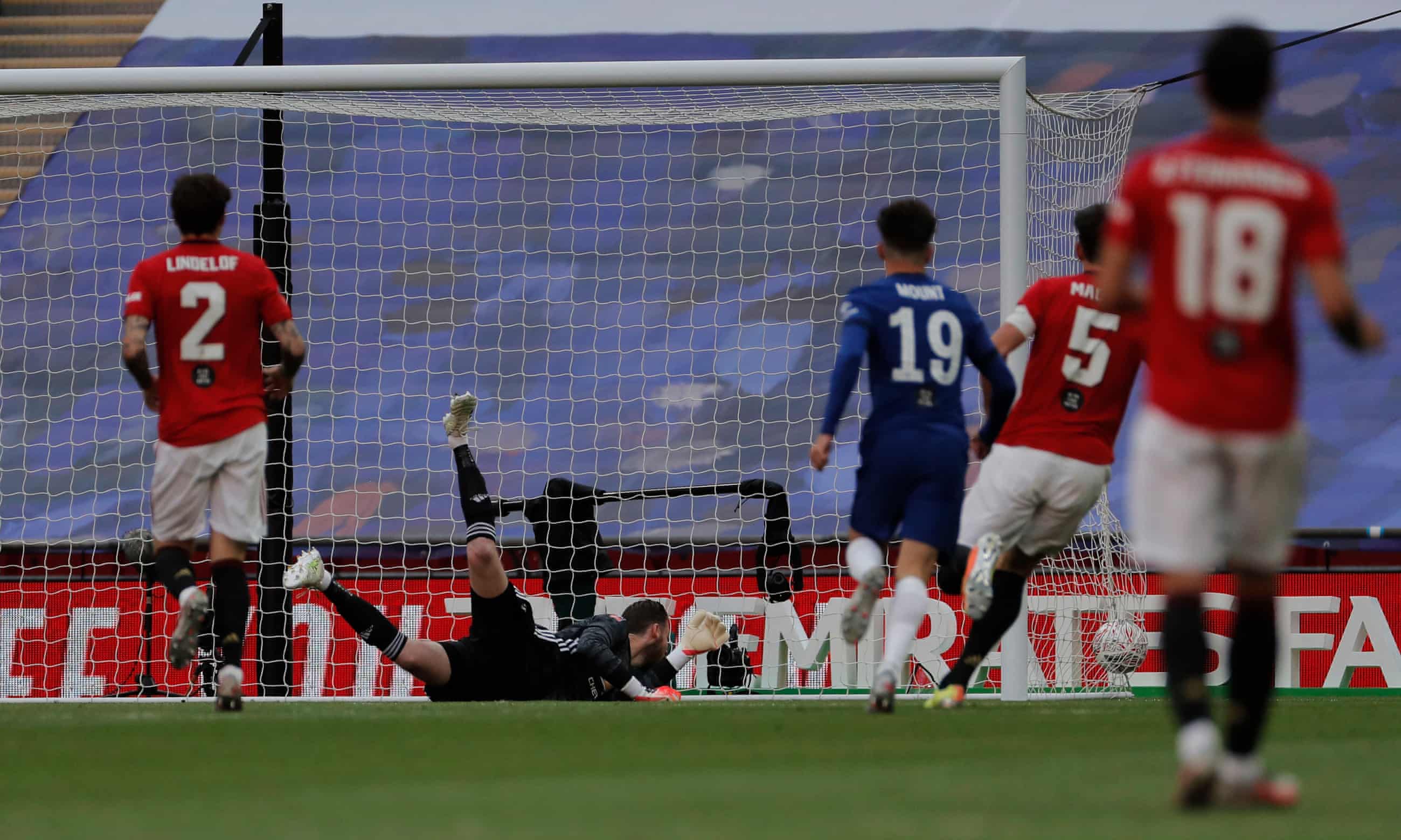 If he was arguably at fault for Chelsea's first goal, failing to get enough on Olivier Giroud's close-range flick, then he definitely was to blame for their second. Even the third goal, turned past him by his captain Harry Maguire, should have been dealt with. In those two moments, United's long unbeaten run disappeared - and with it, a place in a first cup final under Ole Gunnar Solskjaer slipped, literally, from our grasp.